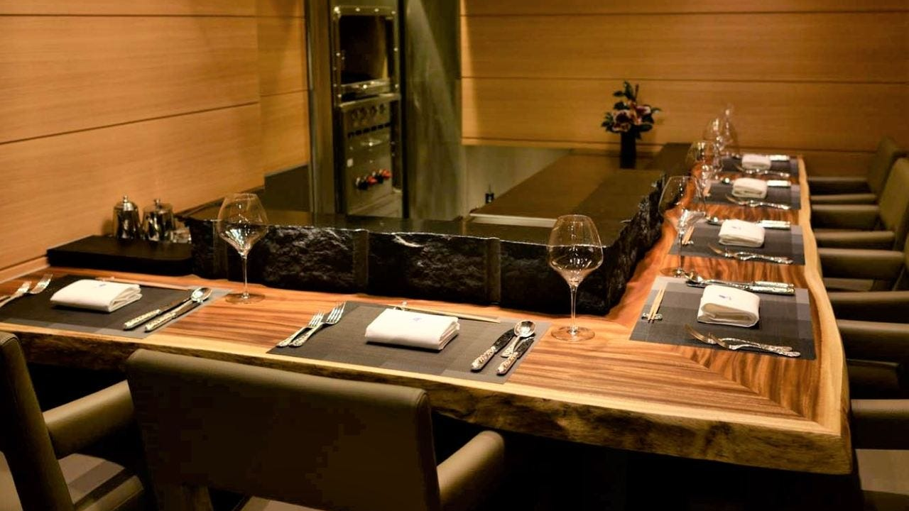 Fully equipped with both private rooms that can accommodate large groups and a room with counter seating and a private chef, in the main hall we offer our chef's grand performance in the open kitchen, the sound of sizzling meat, and our dishes made with quality ingredients, a treat for your senses. We have also assembled a sommelier-selected assortment of wines from all over the world.