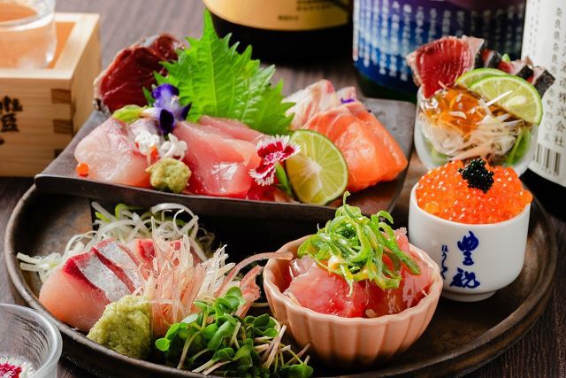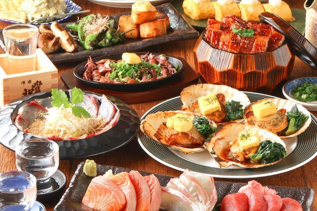 ◆Appetizer 3 Assortment ◆Pork Sesame Mayo Salad ◆Sashimi 3 Assortment ◆Kyoto Moti Pork and Cherry Sea Bream Grilled Shabu ◆Local Chicken Tanba Black Chicken Fried Chicken ◆Homemade Fried Potatoes ◆Kyoto Style Tamago with Clams ◆Noodle Soup to Finish ◆Dessert ※ +300 yen for all-you-can-drink 13 varieties of Yamamoto Honke Sake