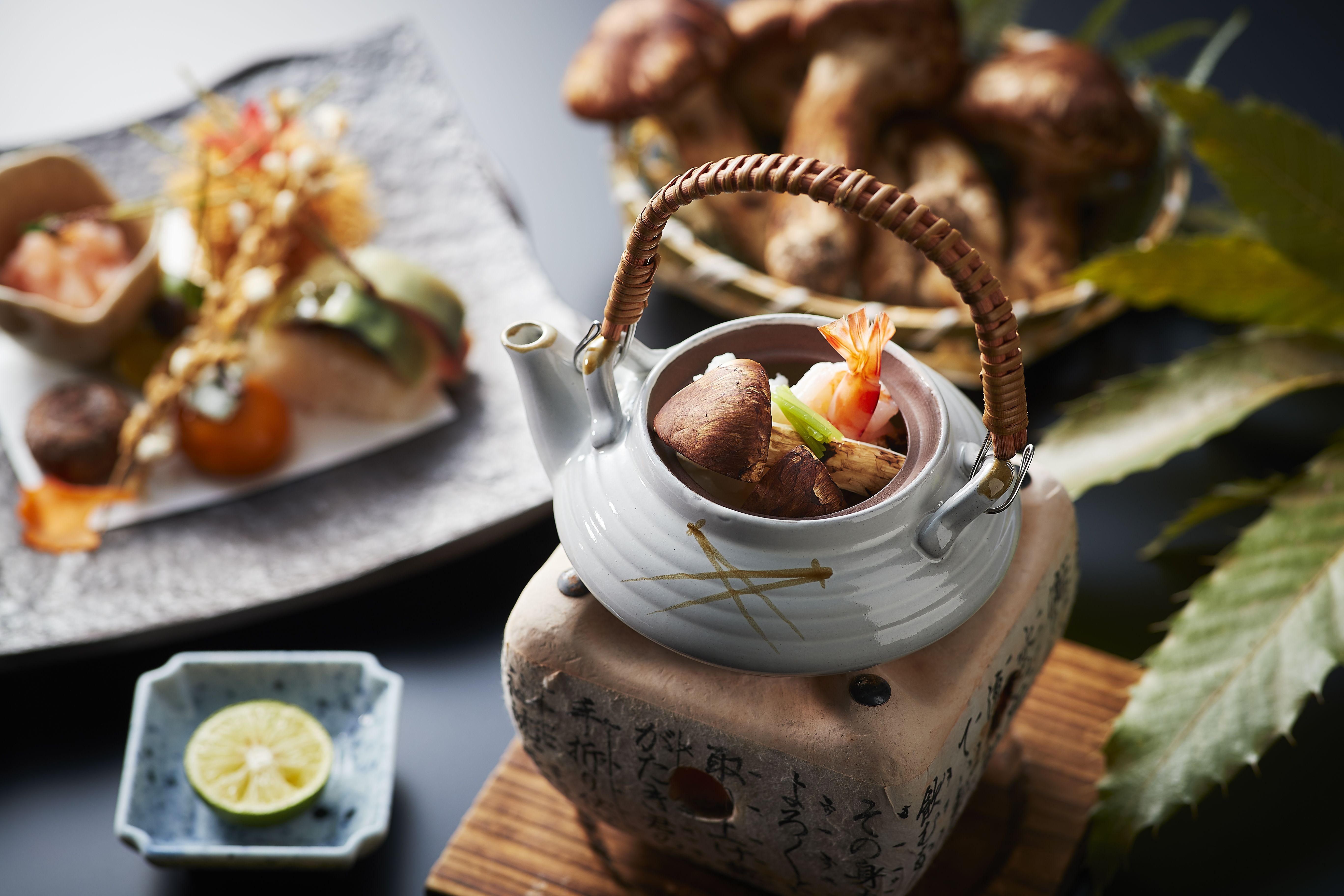 幾種もの食材から一つひとつ丁寧に取る“出汁”を信条に、食材の魅力を最大限に引き出す「弁慶」の伝統を受け継ぎながら造り上げる、季節を体感できるお料理の数々をぜひ、お愉しみください。 吉野産ひのきを使用した寿司カウンターでは、職人の技を目前にしながらの寿司の数々をご堪能いただけます。