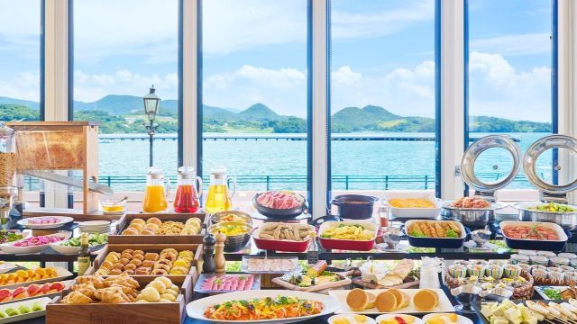 Get lost in the moment watching the expanse of ocean in front of you. Our seafront restaurant provides relaxation and luxury as you overlook Omura Bay with someone special. We serve a buffet cooked on the go by our chefs. For breakfast we have fluffy omlettes, soft pancakes and our popular grilled ham steaks. For dinner, enjoy our fresh, seasonal meals. Both Japanese and Western menus available.