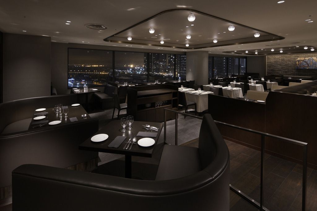 Italian dining, rich wine menu, view of Yokohama Bay Bridge