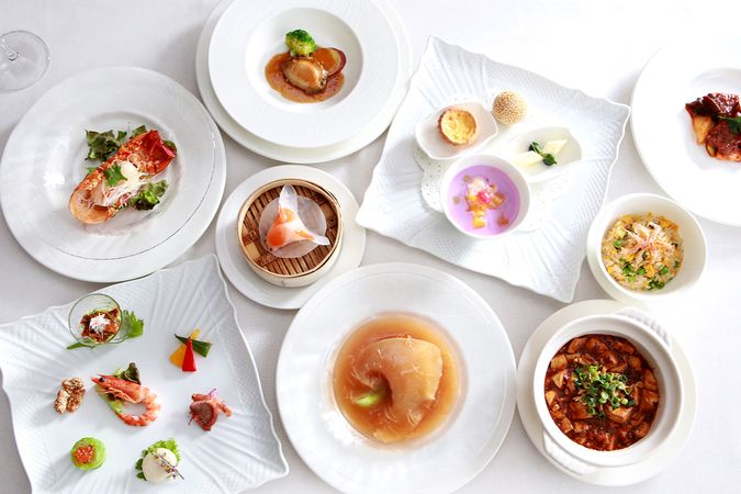 MAR~MAY's Course ・Pavilion Appetizer Presentation ・Wok-Fried Scallop with Green Chili Pepper ・Whole Superior Shark Fin with Conpoy and Sakura Shrimp ・Wok-Fried Mogami-Beef Sirloin with Black Pepper Sauce ・Stewed Abalone with Cream Sauce ・Steamed Grouper with XO Sauce ・Crisp-Fried Noodle with Pork Paprika Stew ・Seasonal Dessert Finale