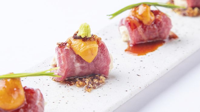 店内に入ると、そこは都会とは思えないお洒落で落ち着いた空間が広がっています。日本の四季を感じる料理を楽しみたい、そんな願いを叶えるメニューが豊富にございます。肉料理が好きな人には、牛ひれ肉の陽炎石焼きや黒毛和牛の牛鍋をお召し上がりください。また、厳選した旬の魚をお造りで用意しています。お酒のおつまみには、蟹みその甲羅焼きやあおりいかの松前漬けもございます。料理と一緒に、全国から取り寄せた日本酒もお楽しみください。