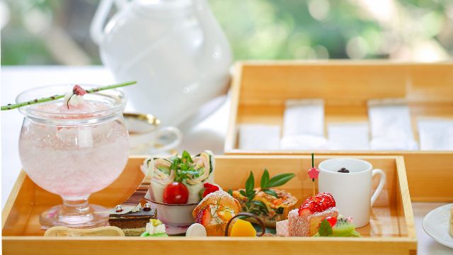 明治時代のホテルロビーを改装した店内は、明るく上品な空間。歴史を感じさせる柱頭彫刻など明治時代の装飾品が飾られています。看板メニューには、明治時代の初代料理長が考案したニジマスのソテー、クリームコロッケなどをご用意。現在も100年前のレシピを再現したメニューは、多くの著名人たちに愛されています。アイスクリームやフルーツなどのデザートもございますので、一緒にお楽しみください。
