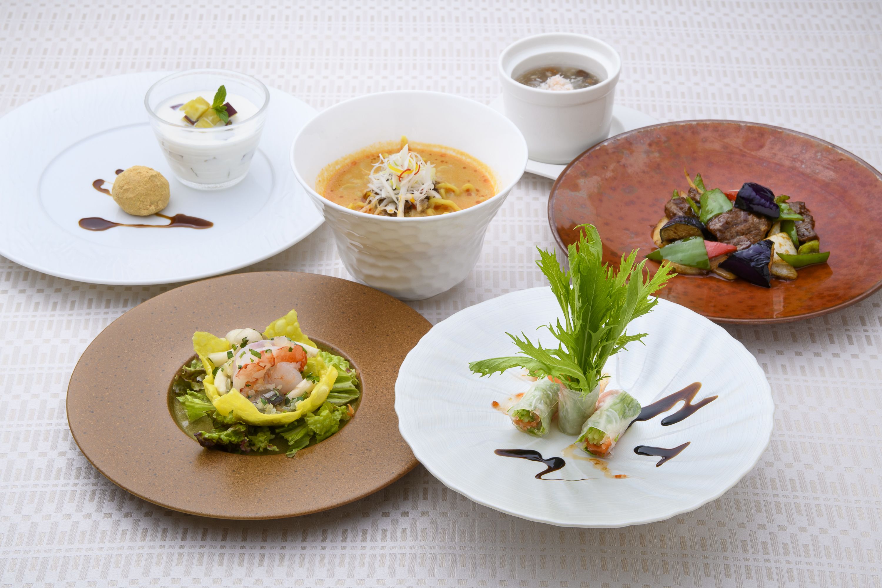 ・Assorted four-course appetizer platter ・Today's soup and dim sum ・Main dish (meat or seafood) [December 1st - December 31st] ・Meat: Beef and radish stir-fried with black bean sauce ・Fish: Fried white fish with sweet and sour sauce ・Chicken and melon noodle soup ・Dessert platter ・Pu-erh tea ~Please visit our website for detailed menu information~