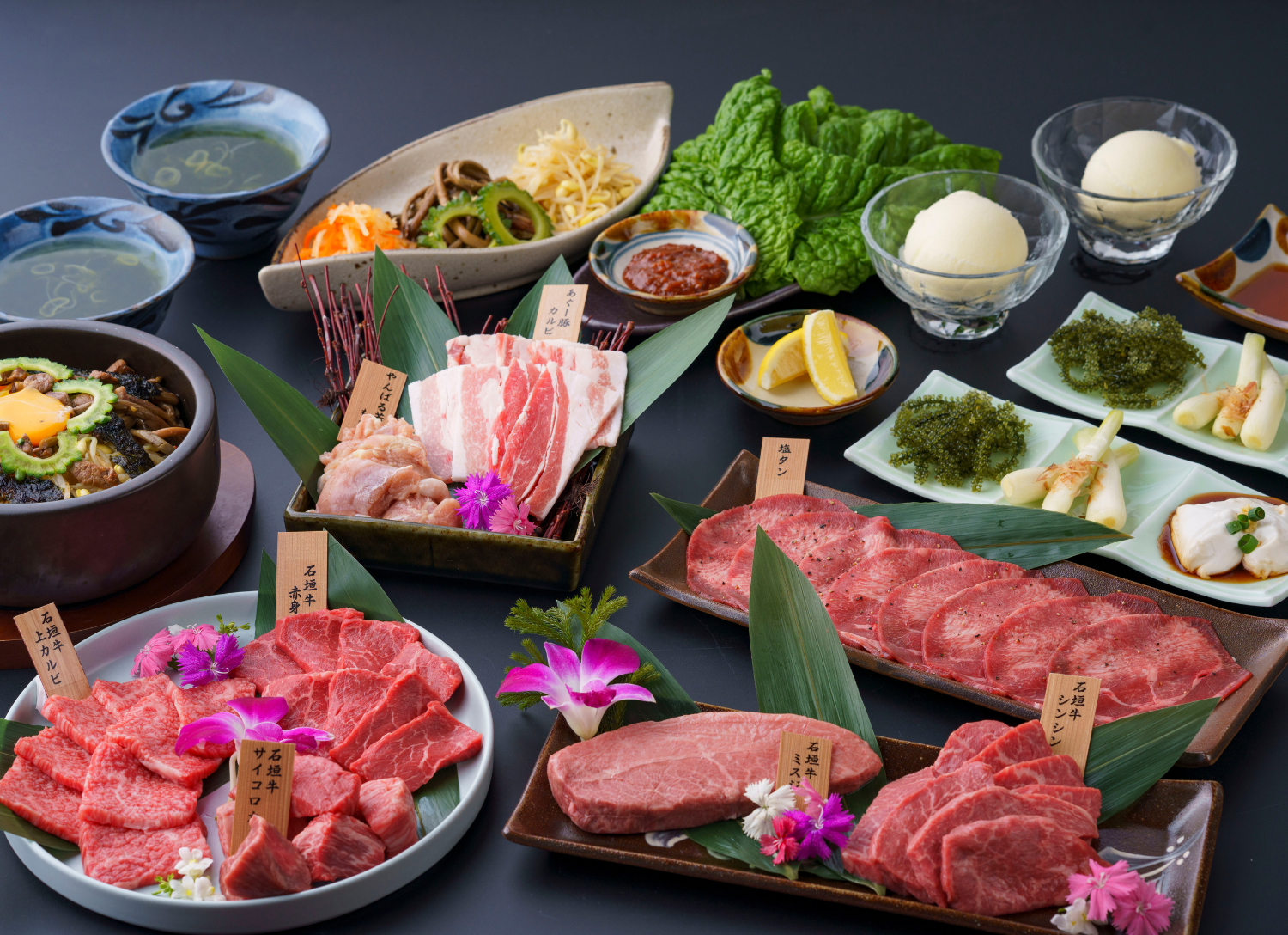 A gourmet feast of Ishigaki beef & Okinawan dishes