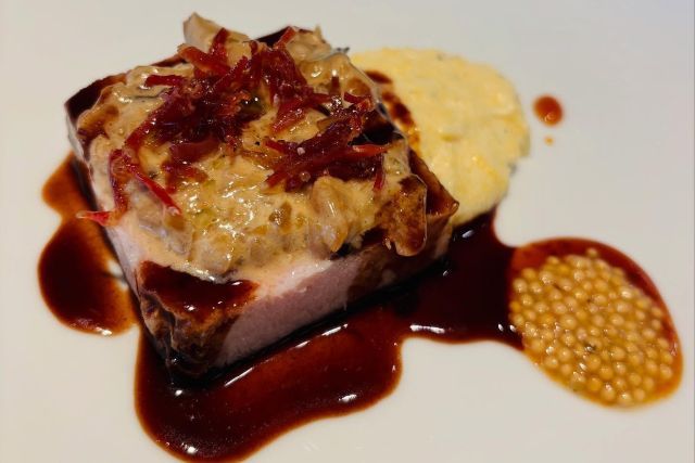 [Dinner] 5 dishes in total including appetizer platter, two main courses of meat and fish, and dessert