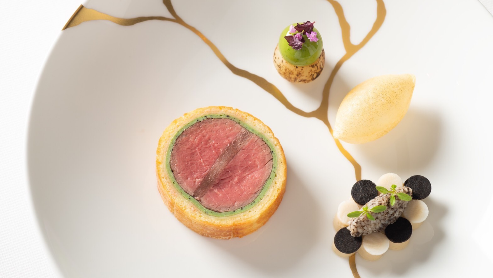 世界一のシェフの感性と技術で表現されたお料理を、サービススタッフがアレンジを添えて目の前で完成させ、 ソムリエが最高のペアリングをご提案します。