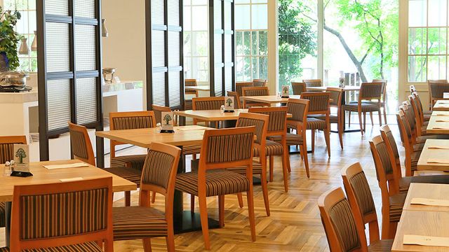 落ち着いてお食事をお召し上がりいただけるよう、店内はシンプルで自然な雰囲気に拘っております。お天気の良い日には、ホテルの中庭に面した大きな窓から降りそそぐ日差しと緑が優しい景色も、お料理と一緒にぜひお楽しみください。朝食からランチ、ディナー、憩いのティータイムまで、ご来店いただいたすべてのお客様にご満足いただけるよう、種類豊富にバランスよくメニューを取り揃えております。素材から拘り丁寧に作り上げた自慢の料理たちを楽しみながら、ゆったりと上質なひと時をお過ごしください。