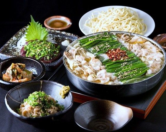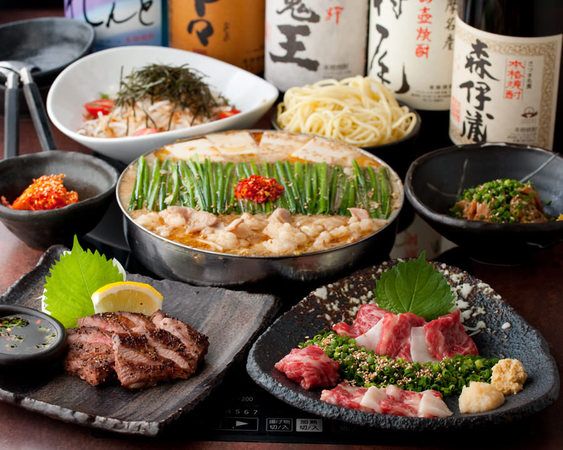 The cave-like interior of the bar offers a comfortable atmosphere with table seats, sofas, and private rooms to suit any occasion. Their signature menu is the authentic Hakata-style motsunabe (offal hot pot) made with Black Wagyu beef from Kagoshima and special miso-based broth. Other dishes include basashi (horse meat sashimi), mentaiko (spicy cod roe), and other regional delicacies.