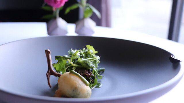 店内は非日常な空間で、いつもとは違ったひとときをお過ごしいただけます。その日1番良い状態の食材や調理法を選び、繊細かつ完成度の高い料理を提供しています。素材本来の味と香りを楽しめる料理はもちろんのこと、目でも芸術品のような美しい一皿をご堪能ください。海老とフロマージュブランや甘エビと焦がしライムなど、他のお店では味わえない革新的な料理をご用意。おいしいワインなども取り揃っており、料理とのペアリングをお楽しみいただけます。