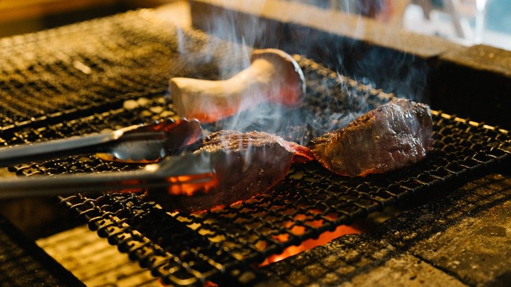 東京・吉祥寺で「赤身肉の聖地」と呼ばれる『肉山』が、ついに富山にオープンいたしました。広々としたカウンター席とテーブル席、シックな内装で皆様をお待ちしております。 牛肉、豚肉など季節によって選び抜いた食材を炭火で焼き、提供いたします。季節の焼き野菜や締めのご飯もついた「お任せコース」のみのご用意となっております。最高の赤身肉をお好みのお酒とともにお召し上がりください。