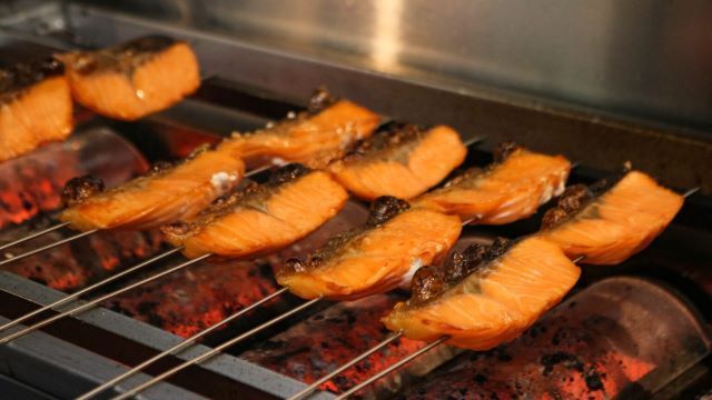 The flaked salmon is a bento box full of fat and umami, as the meat is loosened from the ribs and harasu and then served.
