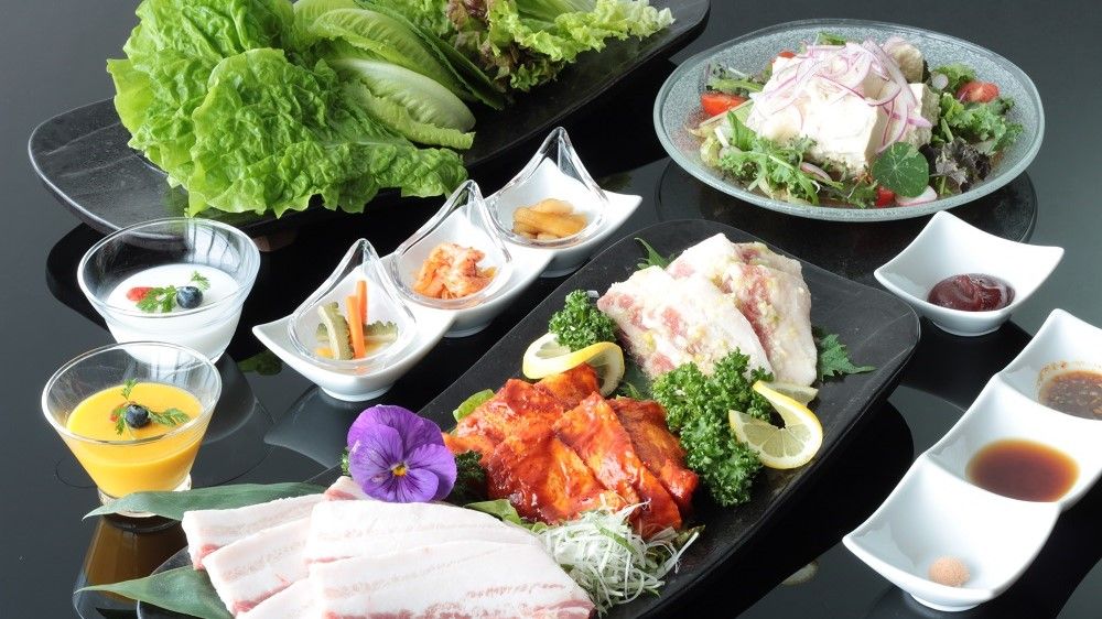 ロビーフロアにある店内に1歩入ると黒を基調とした落ち着いた大人の空間で、昼間の沖縄のイメージとは又違った雰囲気で楽しむことができます。 メニューには、沖縄県産のとてもジューシーなあぐー豚をはじめ、県産の和牛、オリオンビールや泡盛との相性もバツグンです。キムチなどのアラカルトもあります。