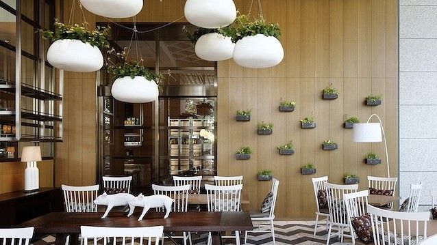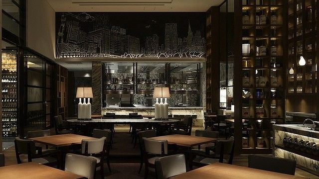 Grand Kitchen serves up an eclectic array of American, French, Spanish and Italian – with a touch of Japanese. A venue for power breakfasts, leisurely lunches and lively dinners, the space features a show kitchen at one end and is accented by a wood-burning oven at the other. And just beyond the main dining room lies its most sought-after seating area – its cozy and serene moat-side terrace.