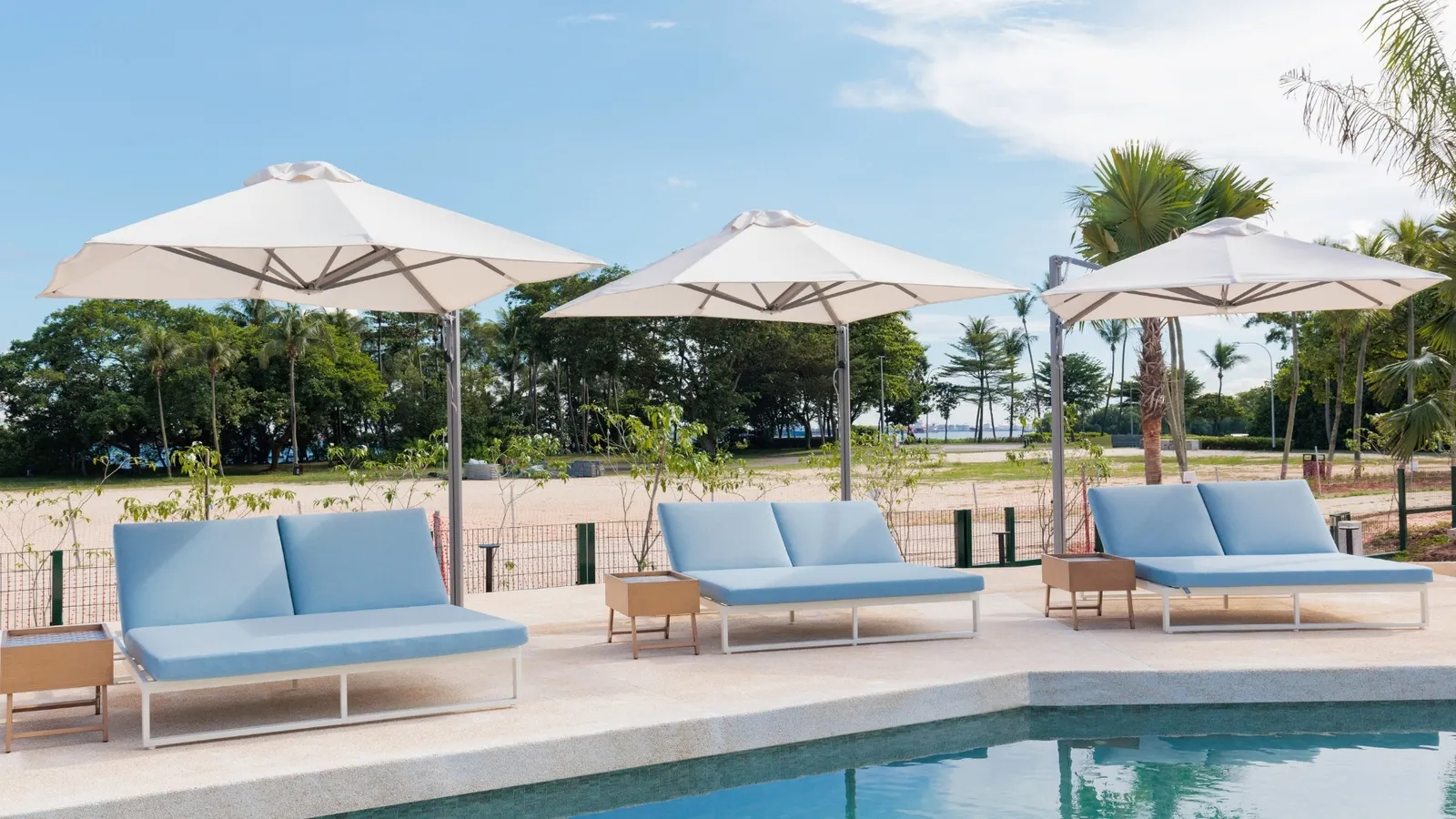 Surrounding the infinity-edge pool, these Sun Loungers positioned on the poolside deck provide access to the pool within steps and offer a panoramic view of the beach club.