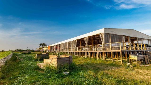 宿泊施設を完備したアウトドアスポット。広大な敷地内では、「ワイルド 贅沢」をコンセプトとしたこだわりバーベキューが味わえます。牛ビーフステーキや豚ロースなどの上質なお肉のほかに、シーフード、野菜、マシュマロなど多種多様な食材をご用意しています。お好みの食材を焼きながら、本格的なバーベキュー料理をご堪能ください。お子様向けのバーベキューメニューも用意していますので、ファミリーでも気軽に楽しめます。