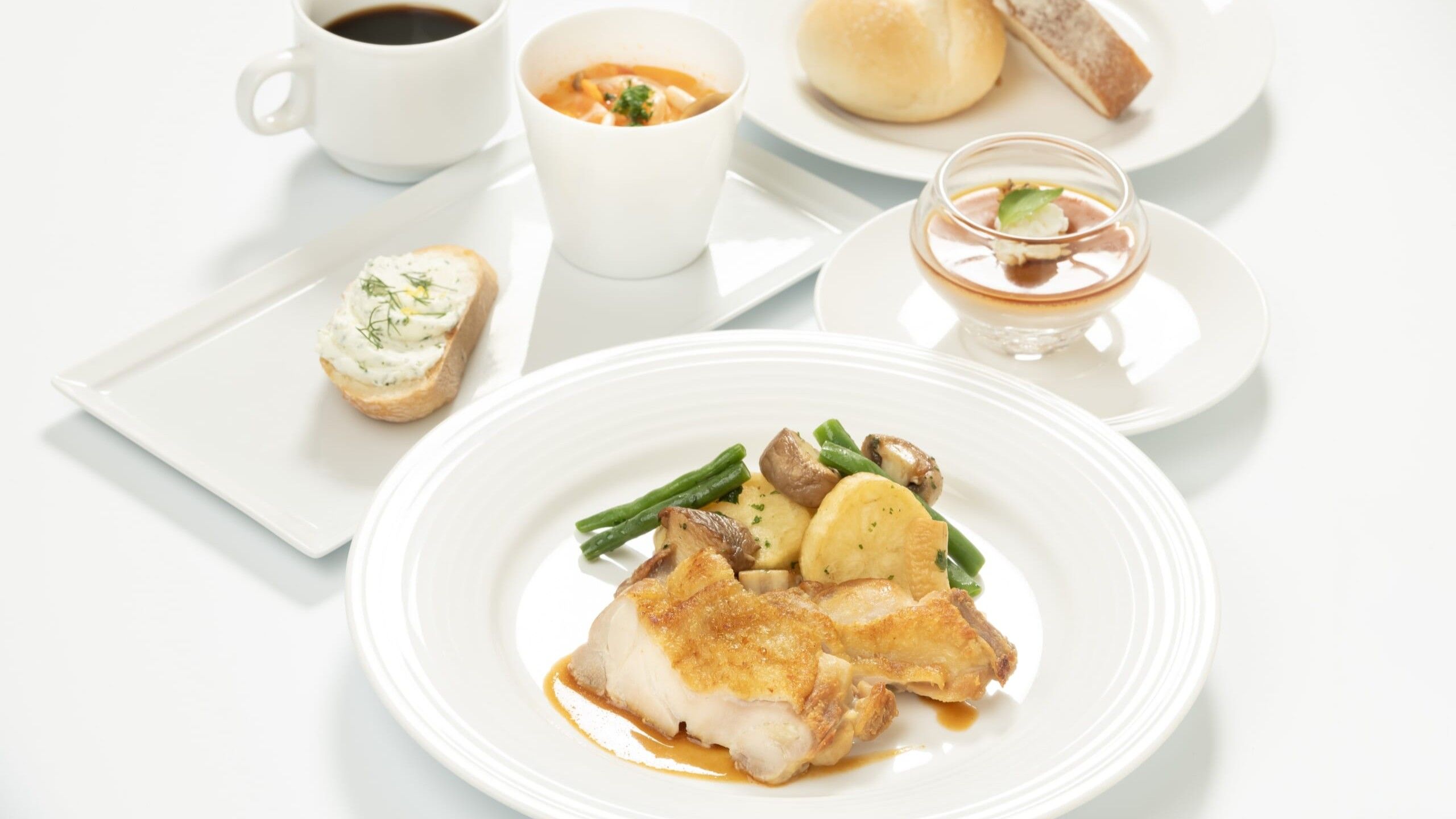 窓の外に広がる小塚山の眺望が美しいレストランで、心ゆくまで季節の欧風料理をお楽しみいただけます。白で統一されたインテリアが洗練された雰囲気を演出し、ゆったりとした空間で心温まるひとときをお過ごしください。おすすめのワンプレートランチや、アレイ特製コースメニューで、香り豊かな料理を堪能できます。