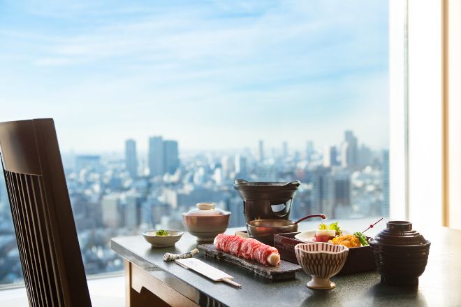 38階にある店内は、東京スカイツリーや富士山を眺められるゆったりとした和の空間。和食・鉄板焼きや寿司などの専門店では、季節の食材を使った刺身や煮物などの御膳、しゃぶしゃぶなどをご用意しています。個室もございますので、親しい方々や接待、会食などでのご利用にもぴったり。落ち着いた雰囲気の中で、ゆっくりとした時間をお楽しみください。