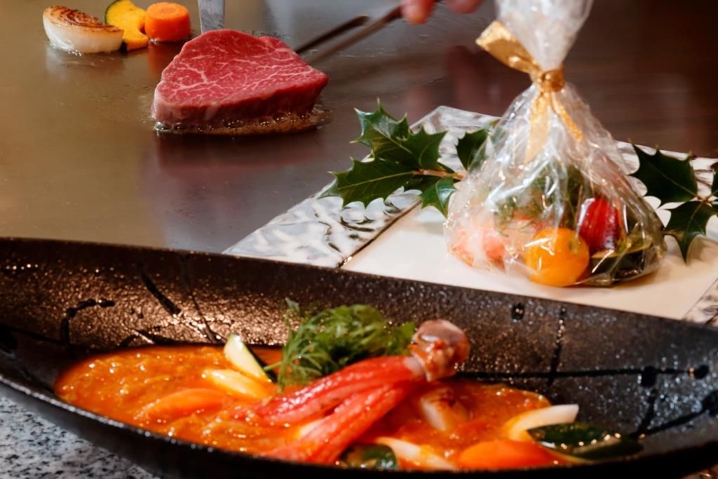 Enjoy spectacular teppanyaki (grilling on an iron plate) where Japan meets the West in a luxurious hotel atmosphere. Delight in a lineup of dishes such as Japanese beef, abalone, lobster, and other fresh seafood and Kyoto vegetables, all cooked over a beautiful grill and seasoned to taste with gourmet condiments. A sommelier will pair the perfect wine with your dishes.