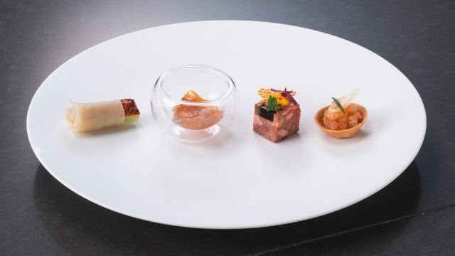 店内の大きな掛け軸に記されている「蓮」。 蓮は中国において縁起の良い花として知られ 【蓮は泥より出でて泥に染まらず】 という強さと繊細さを併せ 持つ花です。 この蓮の花の様に中国料理の旨味深き「強さ」にフランス料理の緻密な「繊細さ」を随所に織り交ぜ、現代の中国料理に昇華させたお料理をご提供させて頂きます。