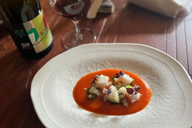 Ripen, a French restaurant along Nishihara Ryokudo, is just a 3-minute walk from Hatagaya Station. With only 8 counter seats, it offers an intimate setting to enjoy the chef’s creative dishes. Featuring seasonal ingredients, courses range from 5 appetizers (¥5,500) to 9 dishes (¥11,000). The beautifully plated dishes and refined flavors make it a must-visit for both special occasions and casual di