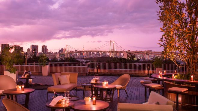 With a panoramic view of Tokyo Bay, the dining experience here differs as the scenery changes during the day. During spring and autumn, you can sit at the open-air terrace and feel the refreshing wind as you enjoy your meal. Be treated to dishes made from the freshest ingredients such as beef sirloin from Australia or grilled chicken breast. Small bites or desserts are available for takeaways.