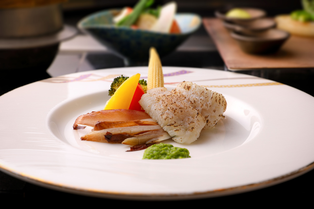 ・メバルの焼き物 新じゃが芋と筍のローズマリー風味