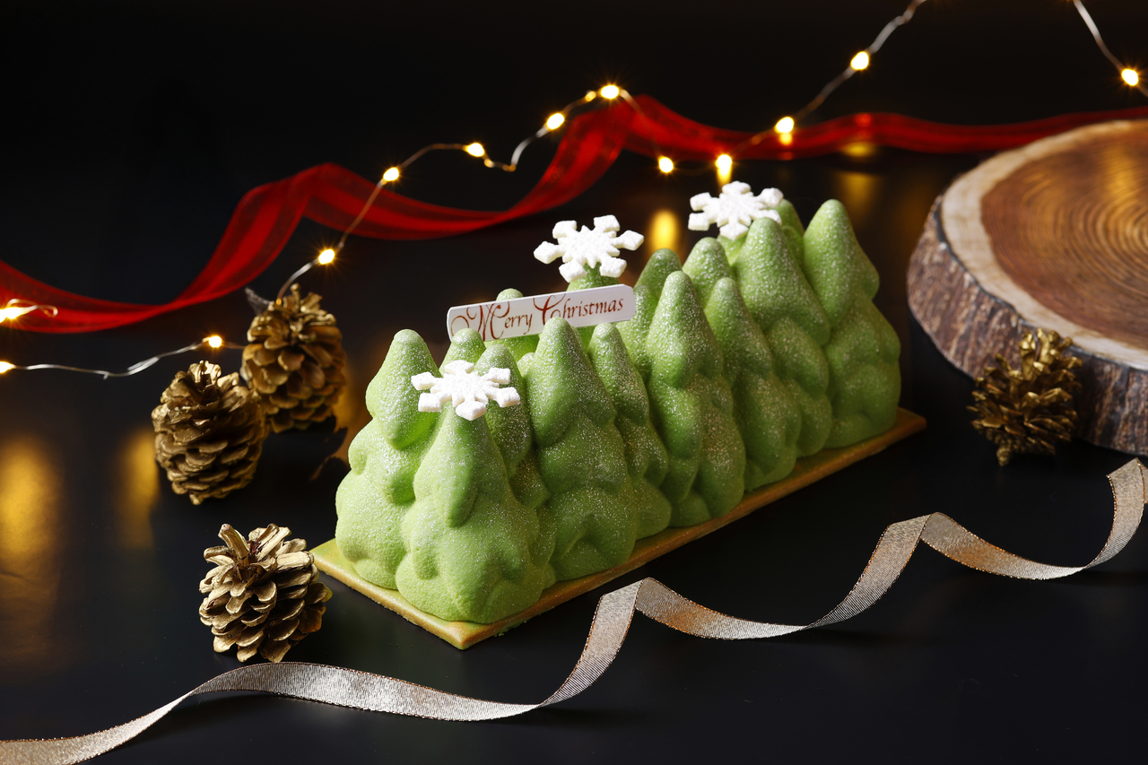 A white chocolate mousse cake with a refreshing lime aroma, inspired by a forest of fir trees.