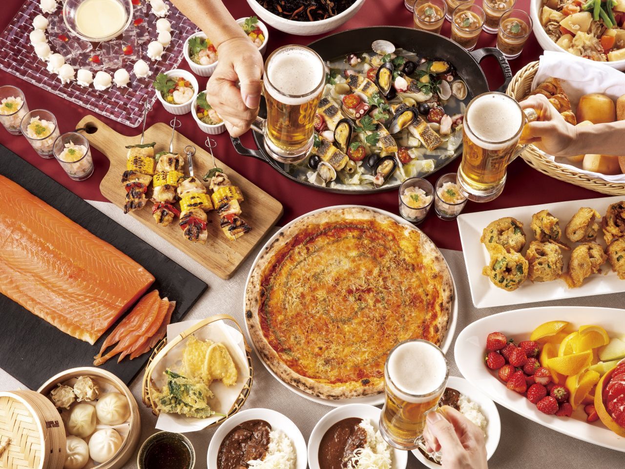 A dinner buffet where you can enjoy the night view of Minato Mirai