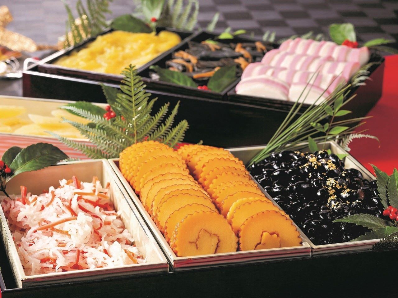 おせちは伊達巻・紅白かまぼこ・紅白なます・昆布巻・黒豆・栗きんとん・田作り・筑前煮を日替わりでご用意しています。他にも50種以上の豊富なメニューをご用意しています。