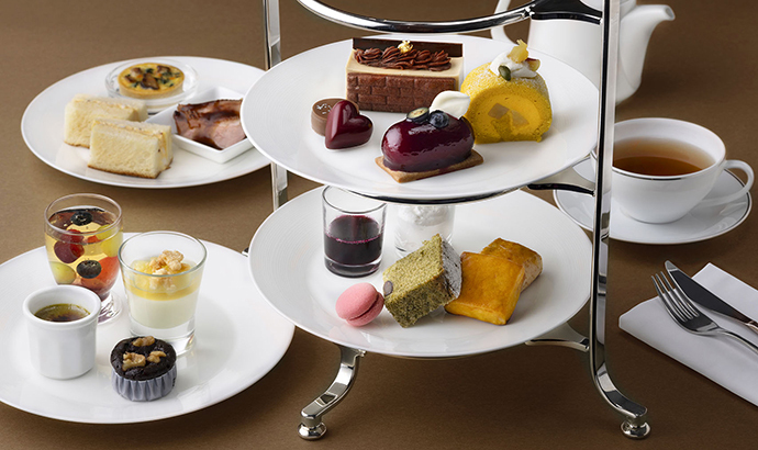 <6 types of sweets> Exotic mousse (passion fruit, mango, banana) Mousse cappuccino Fig berry negras Seasonal fruit tart Seasonal fruit cream puff Scone (soybean flour/plain) Jam & clotted cream <5 types of savory dishes> Seasonal vegetable mousse Organic tomato coolie Egg sandwich Smoked salmon potato onion caper flavored salad Served with salad Wagyu beef roast beef with lefort sauce Marinated red cabbage with prosciutto, tora-ya bean paste, cream, fruit warabi mochi crostini <Drinks> Welcome drink Tea, coffee, etc. including British luxury tea brand "NEWBY" (free refills and change of type) *2 hour system (last order 30 minutes before drinks) *The menu may change depending on the availability of ingredients.