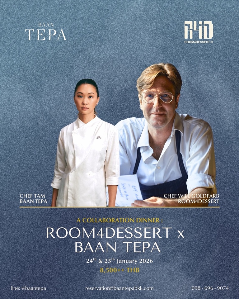 Join us for a special collaboration dinner between Chef Tam of Baan Tepa and Chef Will Goldfarb of Room4Dessert — named The World’s Best Pastry Chef 2021 by Cacao Barry’s The World’s 50 Best Restaurants. This exclusive experience blends Thai creativity with a dessert-led tasting journey, featuring inventive courses that celebrate Thai terroir, sustainability, and boundary-pushing pastry artistry.