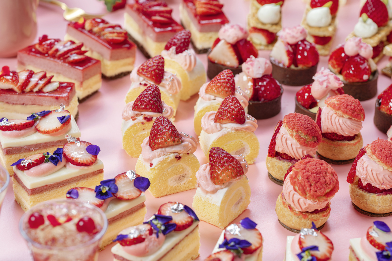 人気の苺のショートケーキや苺のタルト、見た目もかわいい品々が並ぶアフタヌーンティーセットをご用意いたしました。