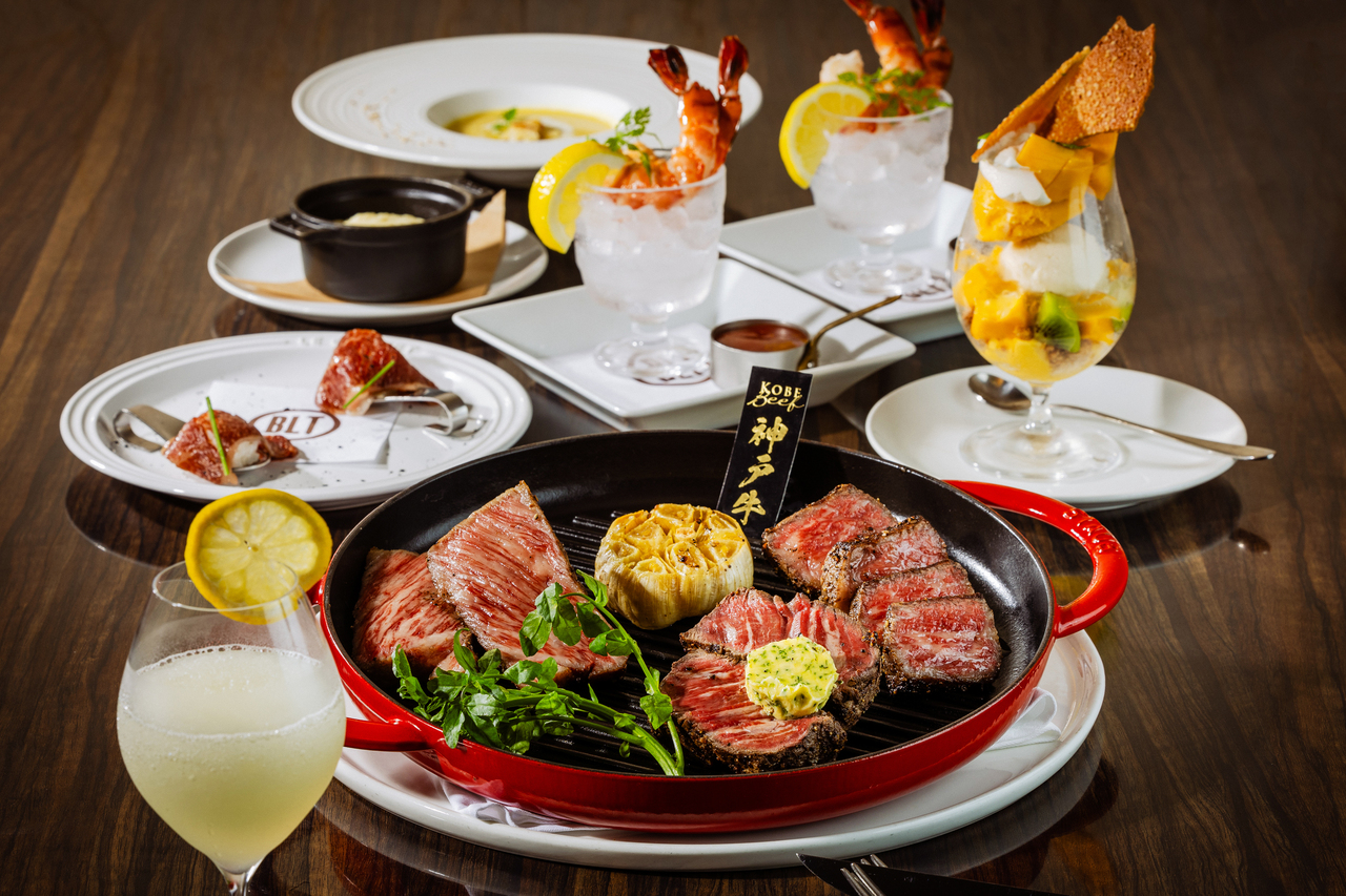 キャビアを添えた前菜やロブスターグリル、メインはドライエイジングTボーンステーキ700gと