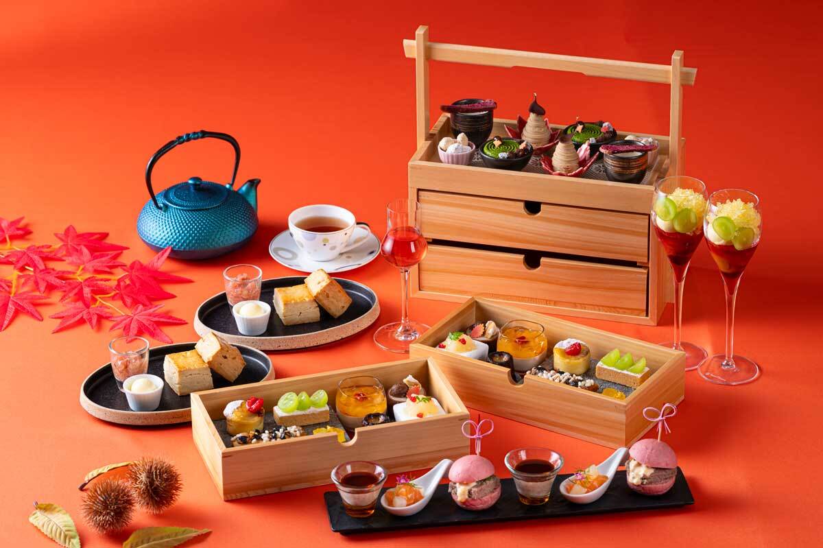 木の手持ち箱には、ホテルメイドの本格スイーツ&セイボリーを詰め込んで。