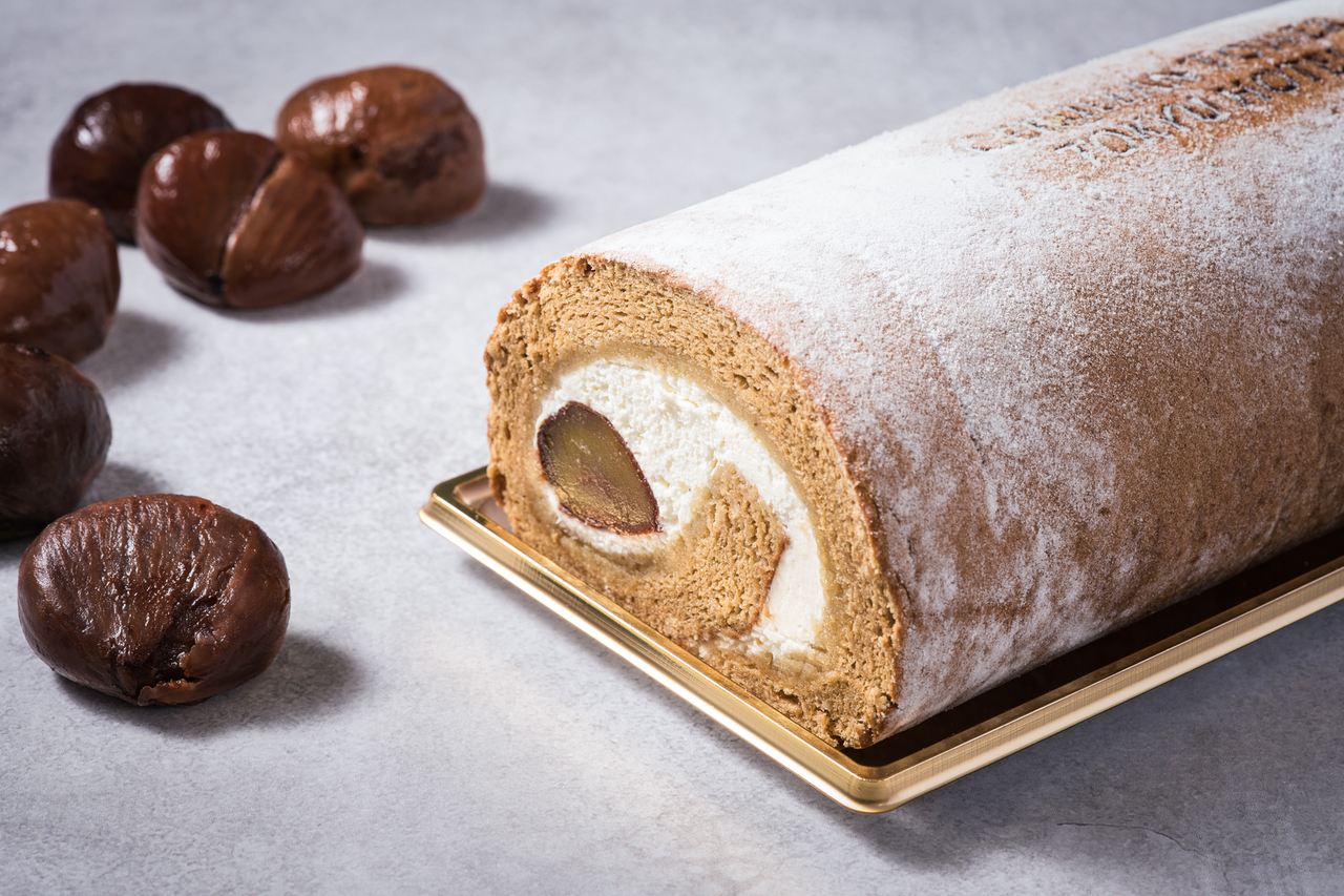 渋皮付きの栗のシロップ漬け、和三盆を加えた生クリーム、和栗のクリームを巻き上げた上品な甘さのロールケーキ。
