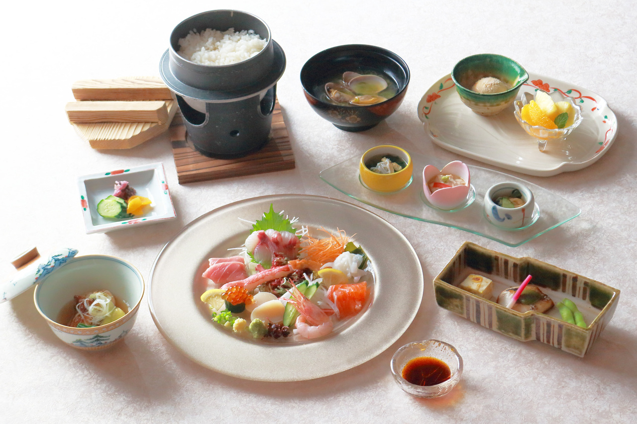 小鉢・焚合せ・焼物・旬のお造り七種盛り・食事・デザート