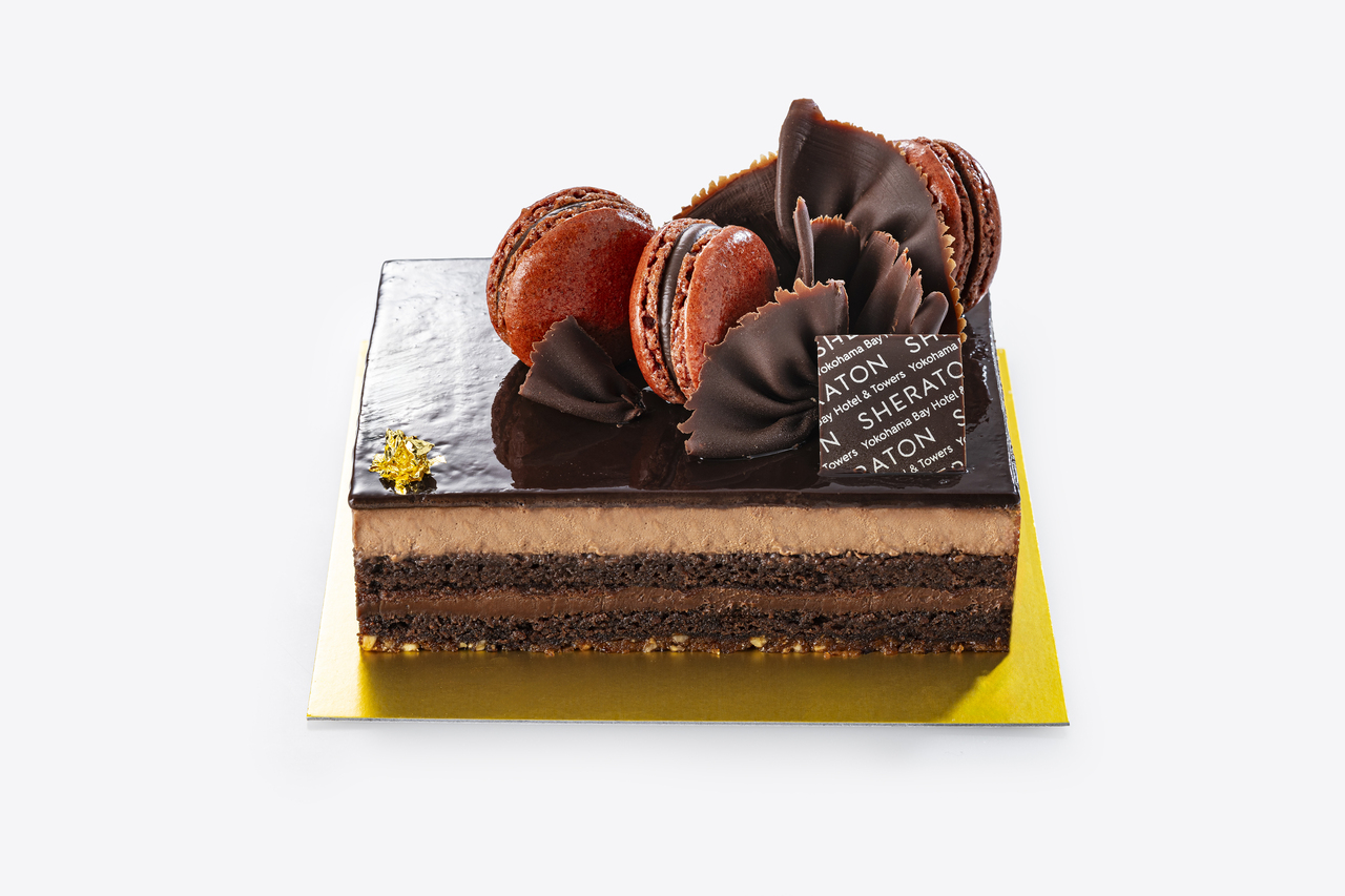 シンプルながらも奥深い味わいを楽しめるクリスマスケーキ「チュアオショコラ」。主役の“チュアオ”のショコラで仕立てた濃厚なムースとキャラメルムースのほろ苦さをアクセントに、豊かな風味の層を生み出しました。中心部分には、ヘーゼルナッツのキャラメリゼを忍ばせ、デコレーションにはマカロンショコラと繊細なチョコレート飾りを添えた見た目にも華やかなケーキです。