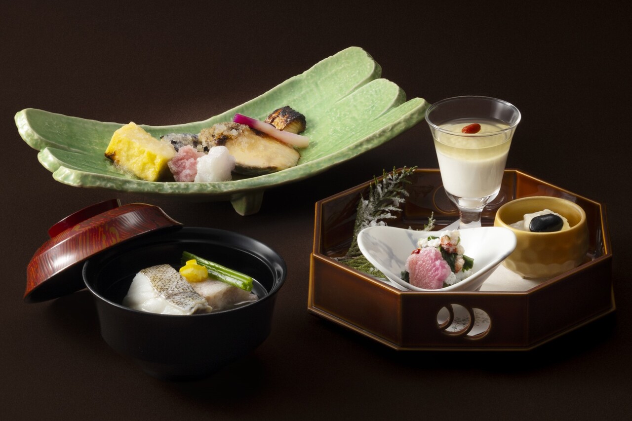 A plan with dessert and drink served with seasonal Japanese dishes.