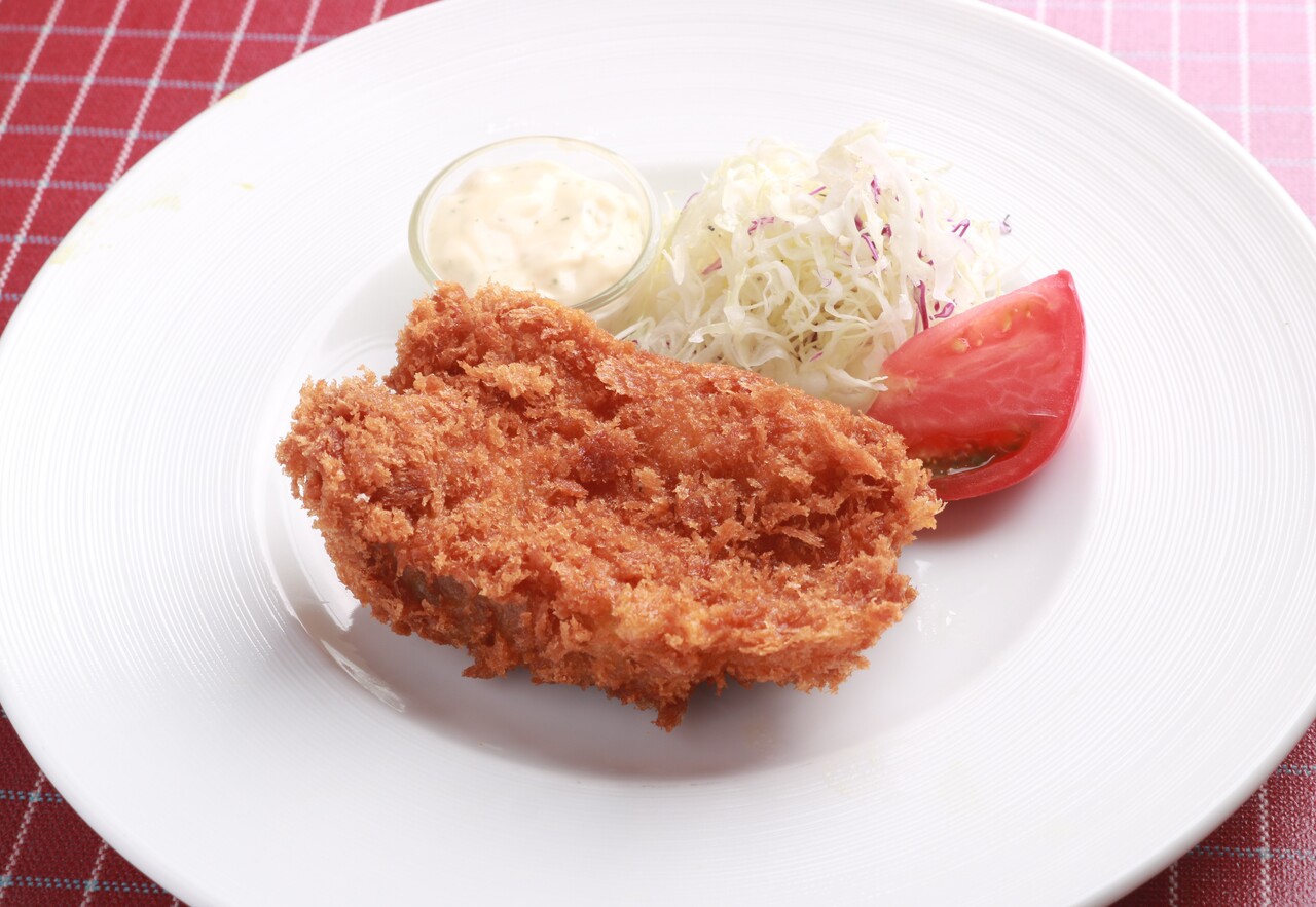 白身魚のムースに紅ずわい蟹を練りこんだクネル。その上に海老の旨みがたっぷり入ったソースとチーズをかけて焼き上げました。添えてあるバケット共にお召し上がりください。