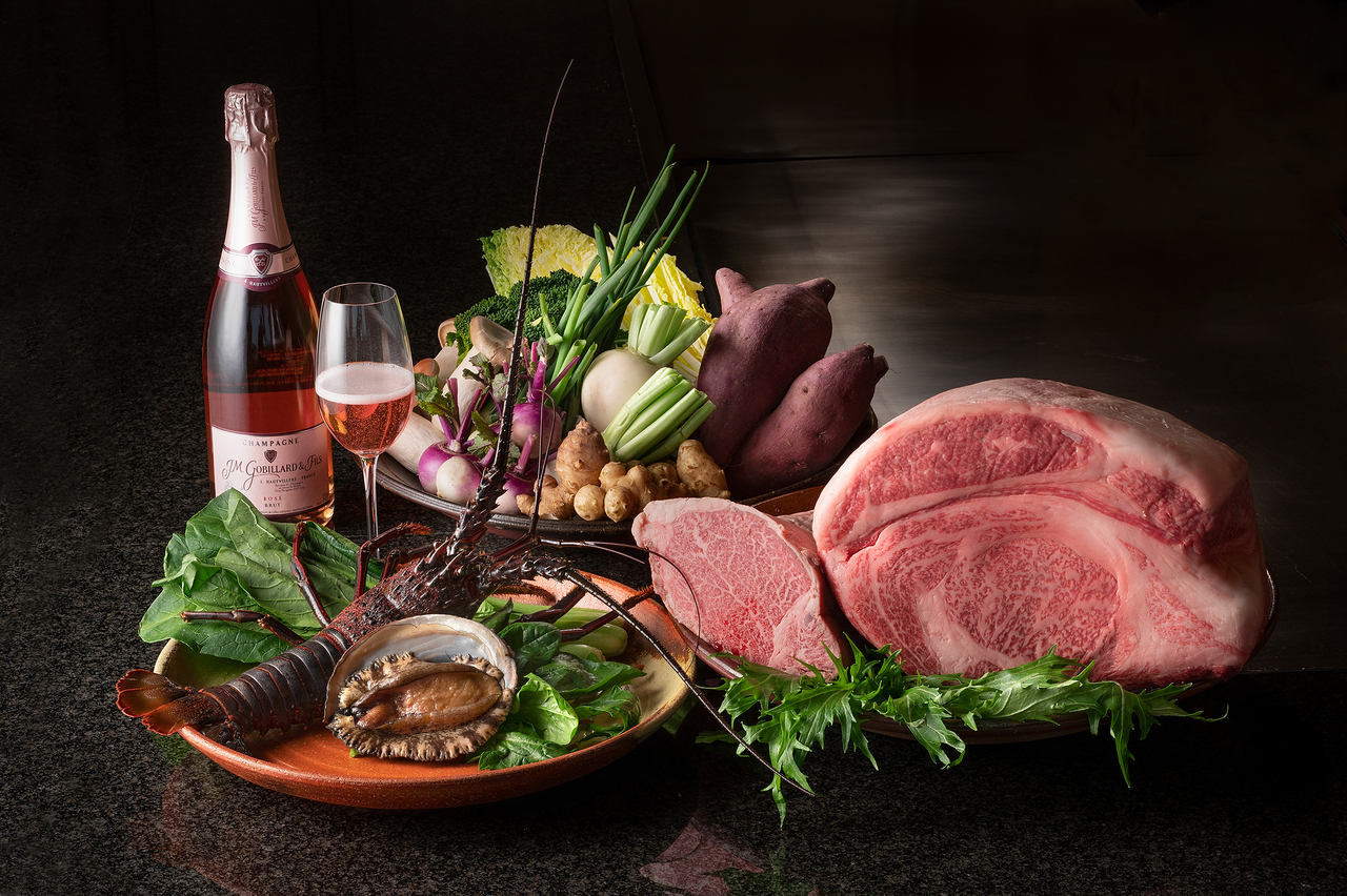This course uses live abalone, live European lobster, and Okayama's famous Chiya beef.