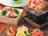• Live snow crab (half a body per person). For king crab (taraba), please choose one of three cooking methods. Live horsehair crab will be served as one crab divided to match the number of guests.