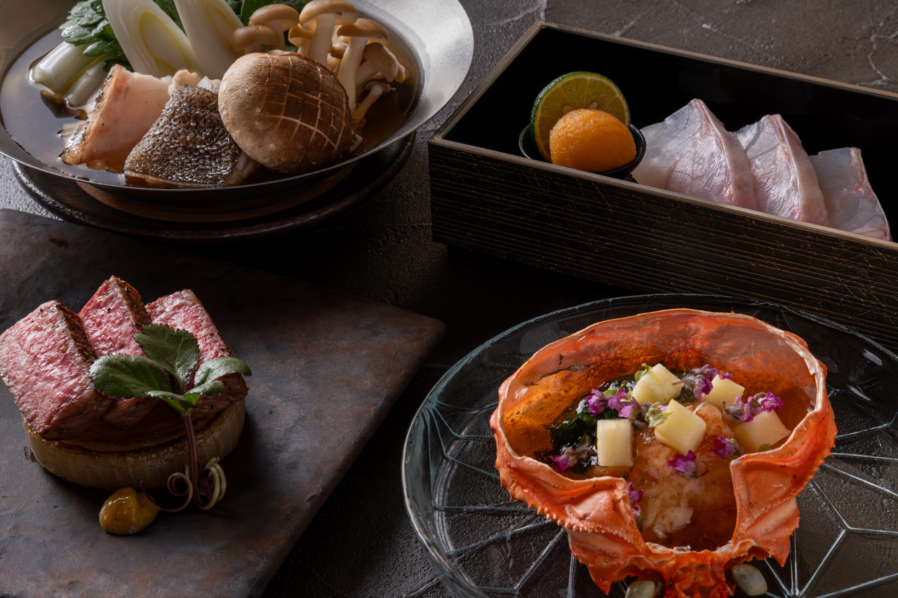 【数量限定】春の「贅沢三昧」特別会席 全7品 ~黒毛和牛と春野菜の出汁しゃぶ 鮑ステーキ 蟹酢甲羅盛り~