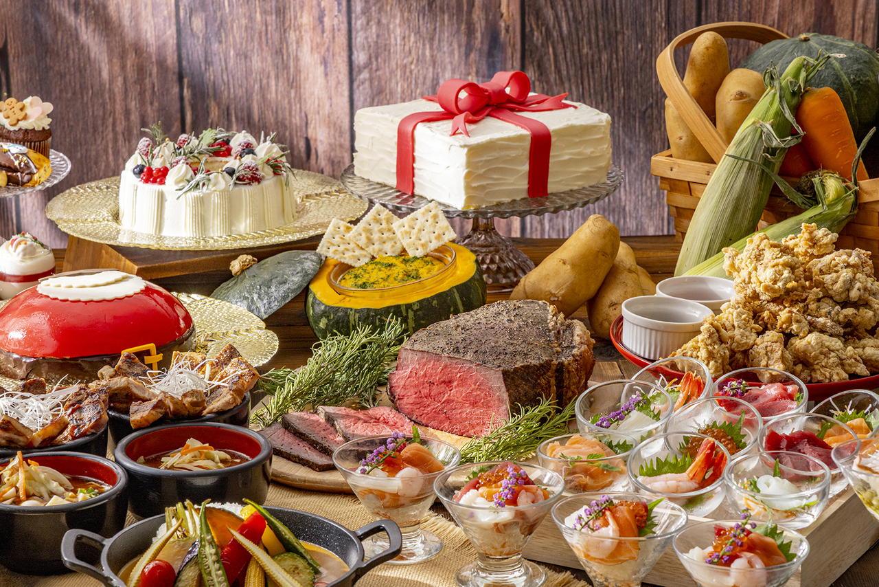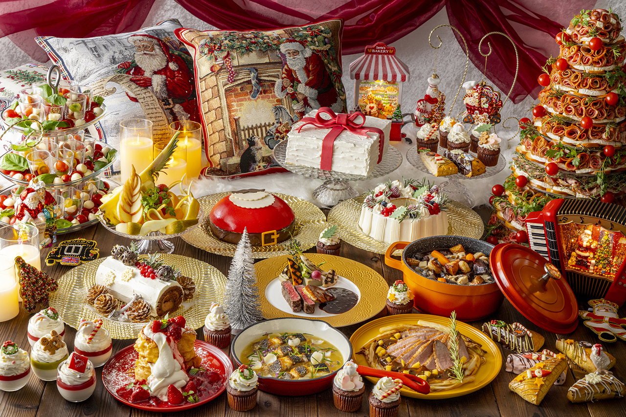 12月20日(土)から25日(木)の6日間、特別な「クリスマススペシャルビュッフェ」をご提供いたします。牛肉の赤ワイン煮込み、鴨胸肉のロティといった主役級のホットディッシュが並びます。お子様が喜ぶキッズメニューはもちろん、サンタクロースやプレゼントボックスをかたどった、見た目にも楽しいクリスマスデザートも充実。3世代で笑顔になれるメニューを取り揃えました。