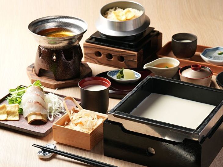 Enjoy a little bit of seasonal flavor. The visually stunning "Nine Kinds of Sky Garden Lunch" is accompanied by rich "Homemade Tofu" and "Yuba Rice Cooked in a Pot." Treat yourself to a lunch that allows you to enjoy the bounty of soybeans, which are good for your body. Enjoy a time for lively conversation.