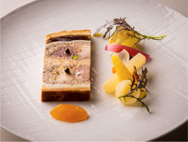 This is a chef's choice course that mainly uses seasonal ingredients from Wakayama and France. *The content and number of dishes may change depending on the stocking situation and the season. Chef's recommended 5 dishes / Proposé par le Chef 2 desserts / Dessert coffee and small sweets / Café et mignardises