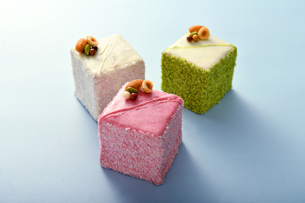 はちみつとやさしい甘みの素焚糖(すだきとう)で焼き上げたスポンジ、まろやかな北海道産生クリーム、いちごやブルーベリー、サクサク食感のアーモンドクラックランフランボワーズがアクセント。ふんわり軽やかな王道のショートケーキ!