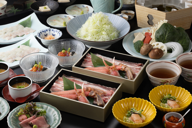 Sakura snapper and bamboo shoots, snow crab and Roppakuro pork shabu-shabu course