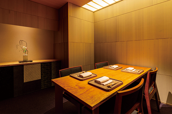 Fine Japanese cuisine places great importance on drawing out the flavors of seasonal ingredients, and on the sensory experience customers are treated to when seated at the counter, watching as the food is charcoal-grilled and steamed in front of them.